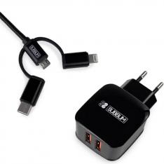 Cargador subblim 12w usb tipo a + cable 3 en 1